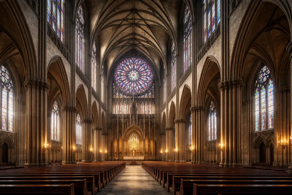 Typickým objektem gotické architektury je katedrála s více loděmi, příčnou lodí (transeptem), chórovým ochozem a věncem kaplí; celek má půdorys latinského kříže.
