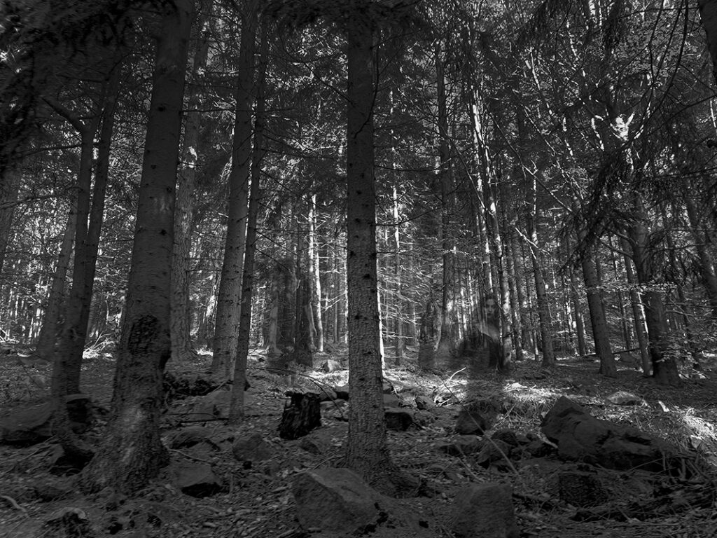 Ten říjnový pátek byl docela běžný. Bylo takové klasické počasí, jak se dalo očekávat. Byl to předvečer Svátku všech svatých, prostě Halloween. Pět lidí včetně mě tedy vyrazilo do neznámých končin. Joe, Slimák, Netopýr, Apolena a já. Vlak nás vyklopil v Mostě a z autobusáku nám jel spoj až skoro na místo. No, na místo… Vystoupili jsme v takové zatáčce. Docela foukalo a po obloze se honily mraky. Joe zavelel a my vyrazili do lesů. Tma už byla taková, jako u Rákosníčka, to znamená, že by se dala krájet. Vzpomínám si, že jsme prošli kolem nějakého domu nebo statku a pak začal skutečný les. Putovali jsme po cestičkách, poslouchali troubení jelenů a mně nebylo zrovna dobře. Ne fyzicky, ale duševně. Měla jsem docela strach. Neznala jsem to tu, ty lesy byly takové divné. I to počasí bylo jako když se prohání Divoká jízda. Mezi stromy občas probleskl Měsíc. To jsem ještě netušila, že zrovna v těchto kopcích je o něm hodně pověstí. Motali jsme se mezi stromy, balvany a skalami. Vím, že jsem jednou i šlápla do potoka. Kolem nás běhali snad všichni jeleni, řvali víc než náš ředitel, když se něco nedařilo, a já už čekala, kdy se z mlhy, která se občas udělala, vynoří lovec Herne, jako v tom seriálu Robin Hood.